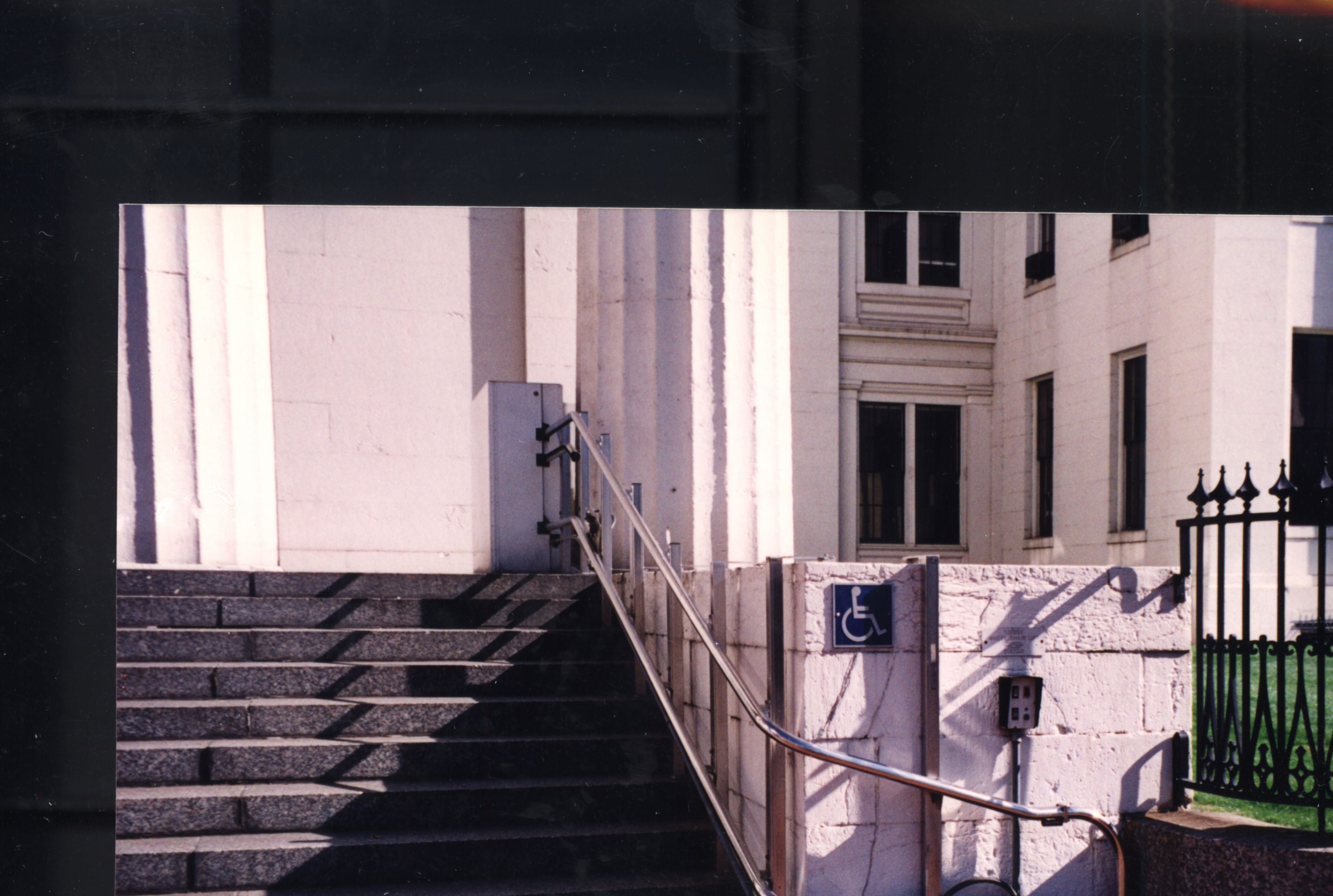 OCH-Exterior-Existing wheelchair left looking east on the Broadway side of the Old Courthouse. ; OCtober 25, 1996
