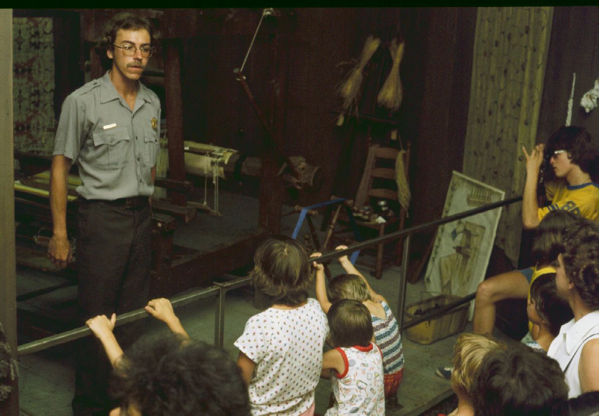 Joe Stremlau giving a tour ; 1977