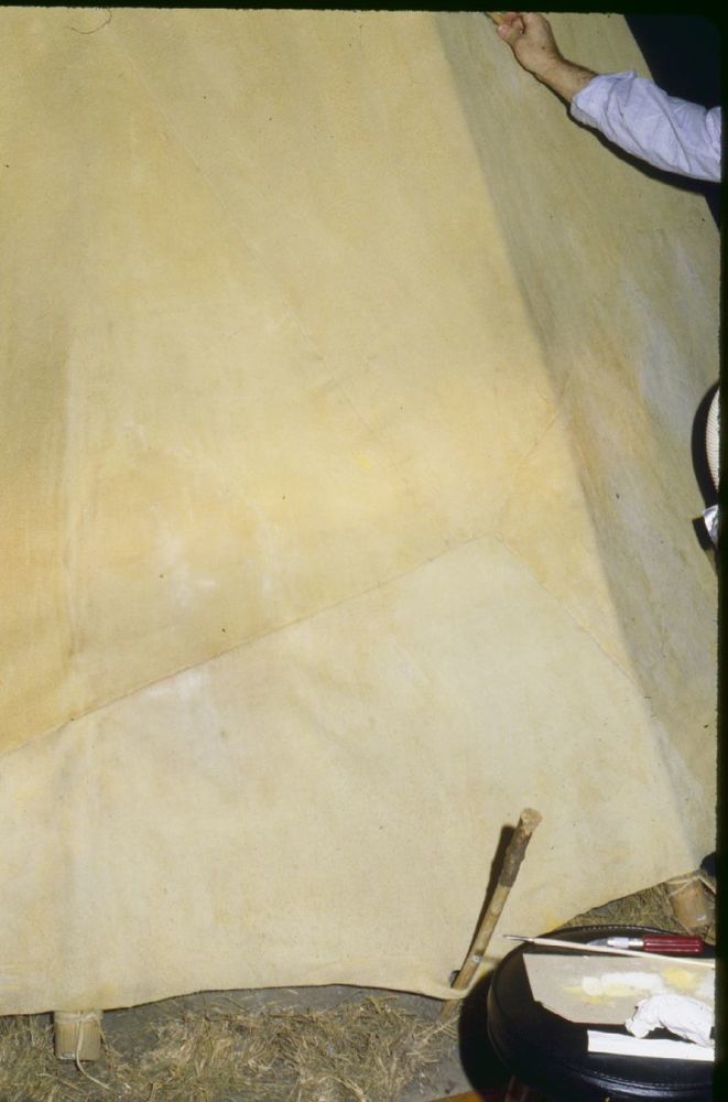 Toby Rafael restoring the Tipi exhibit. ; January 1991