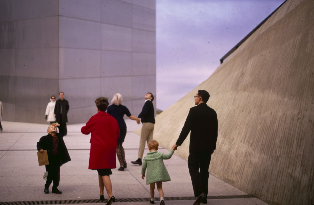 Family on the ramp outside the Visitor Center. ; December 1968
