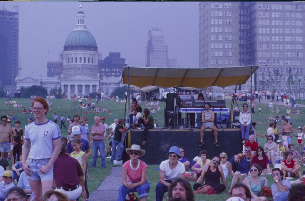 Concert stage and crowd. ; July 3, 1981
