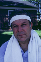 Portrait of an unknown man in workout clothes with a white towel and a white headband taken on Arch grounds. ; August, 1967