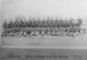 Group photograph of Company D, 1st Infantry, taken in 1887. Ole Sherven is in the last row, sixth from left (marked with an x). This copy photoprint was made ca. 1962 from an original print loaned by Mrs. Astrid Sherven. ; 1887