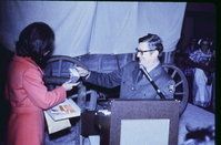 Julie Nixon Eisenhower accepting a gift from the park Superintendent. ; February 1972 (March