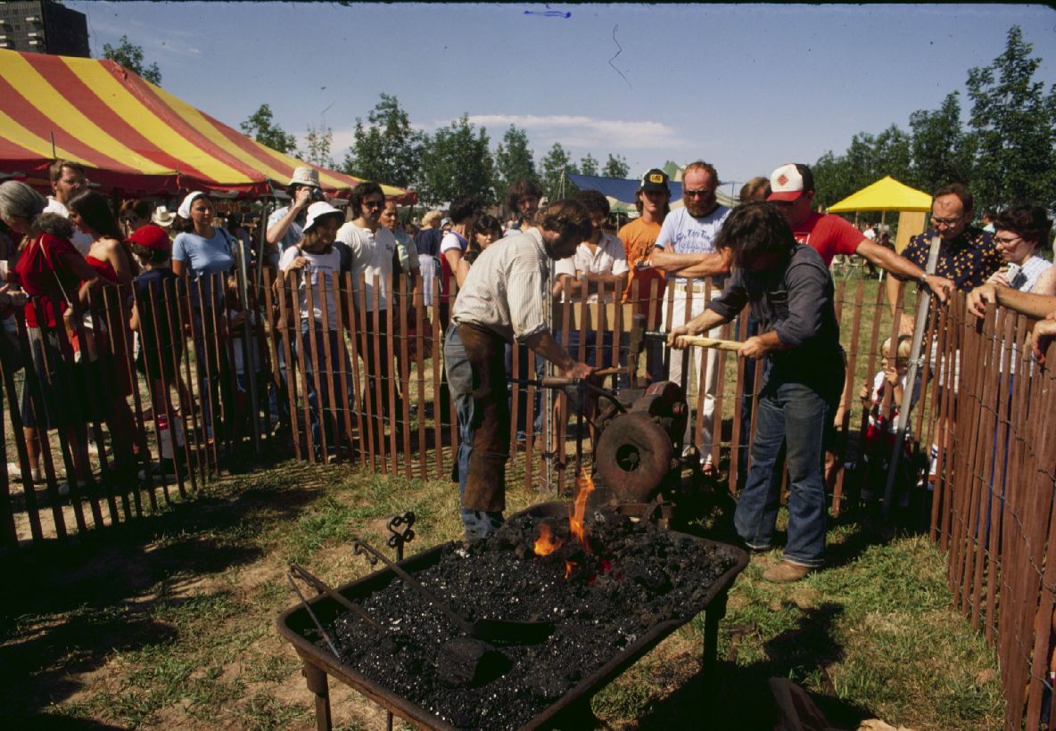 Bob Patrick demonstrating blacksmithing. ; 1979 (July 1980)