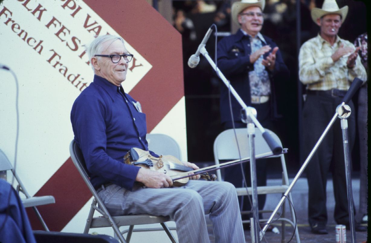 Man seated with a fiddle. ; October 1976