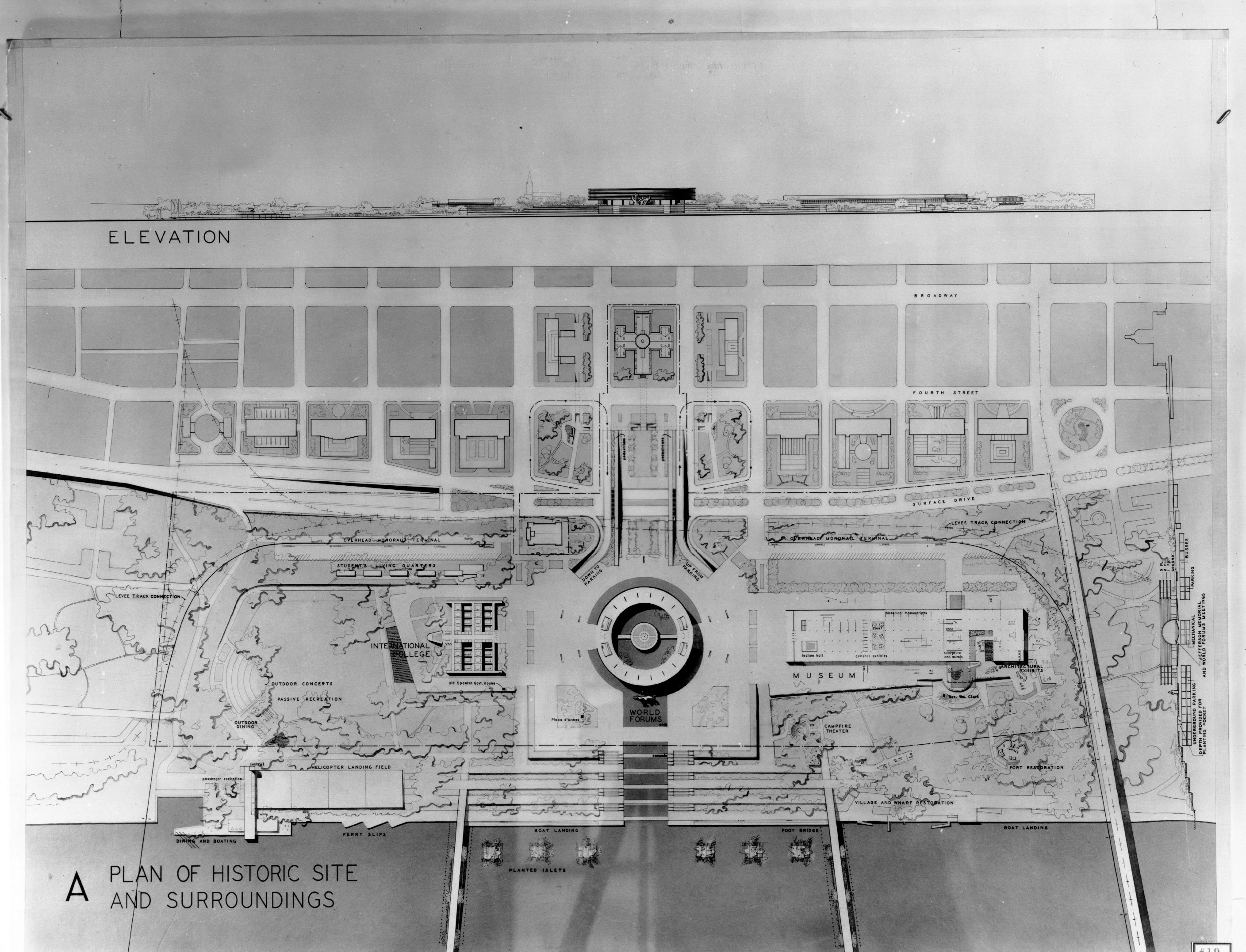 Photo of competition drawings submitted by Mitchell & Ritchey, sheet A. ; ca. 1947