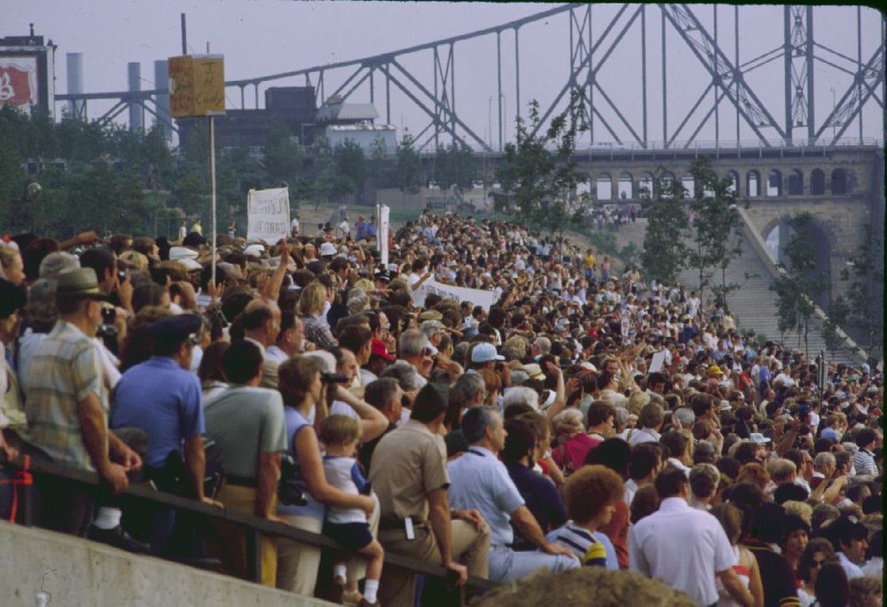 Crowd waiting for Jimmy Carter. ; March 1980