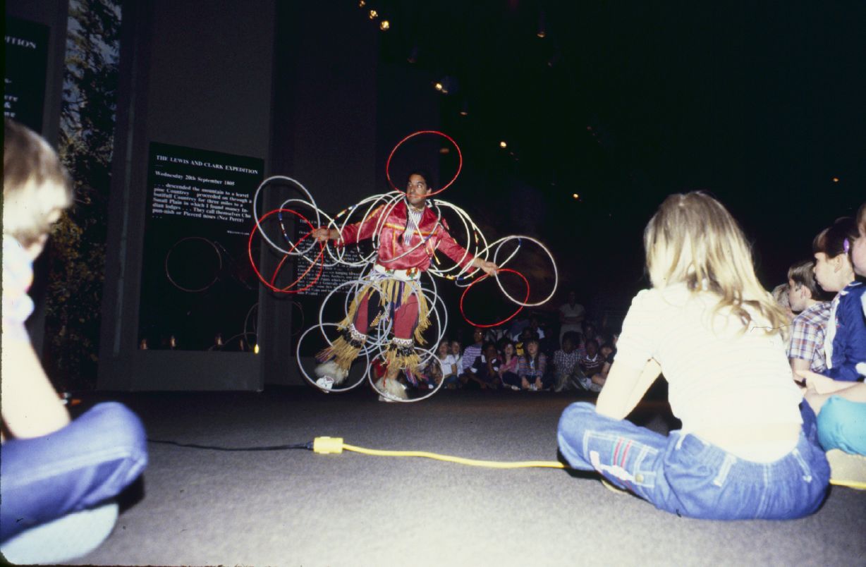 Man juggling with view of the audience. ; May 1983