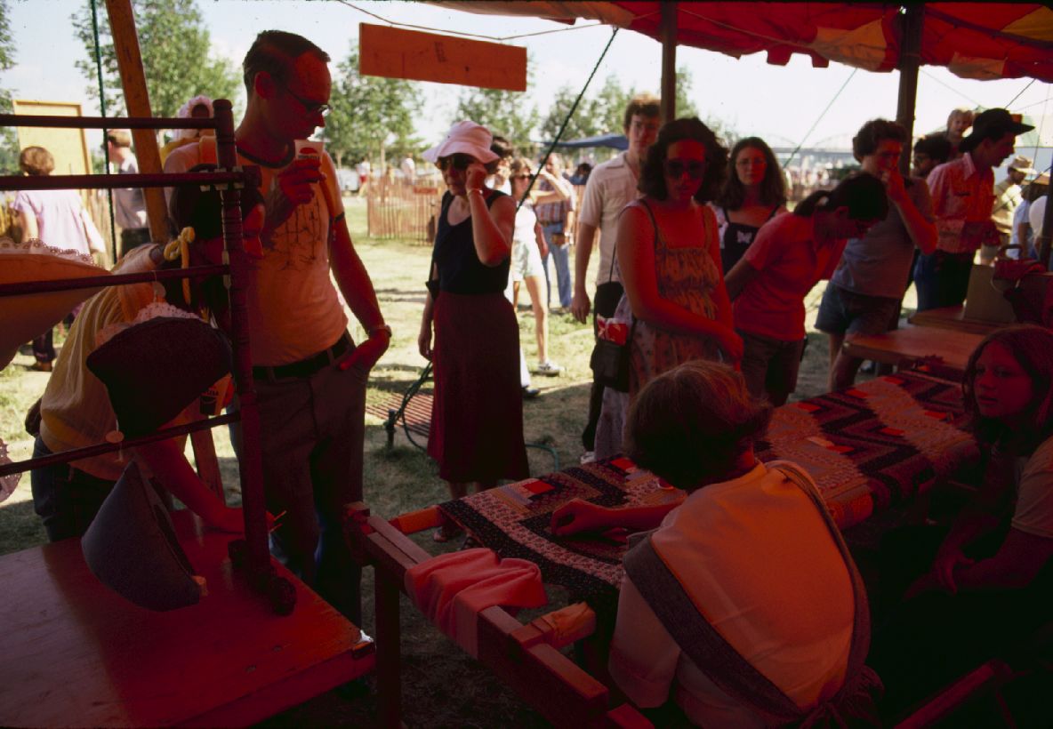 Lois Mueller demonstrating quilting. ; 1979 (July 1980)
