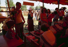 Lois Mueller demonstrating quilting.