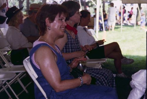 Crowds sitting under a tent watching a performance at the VP Fair.