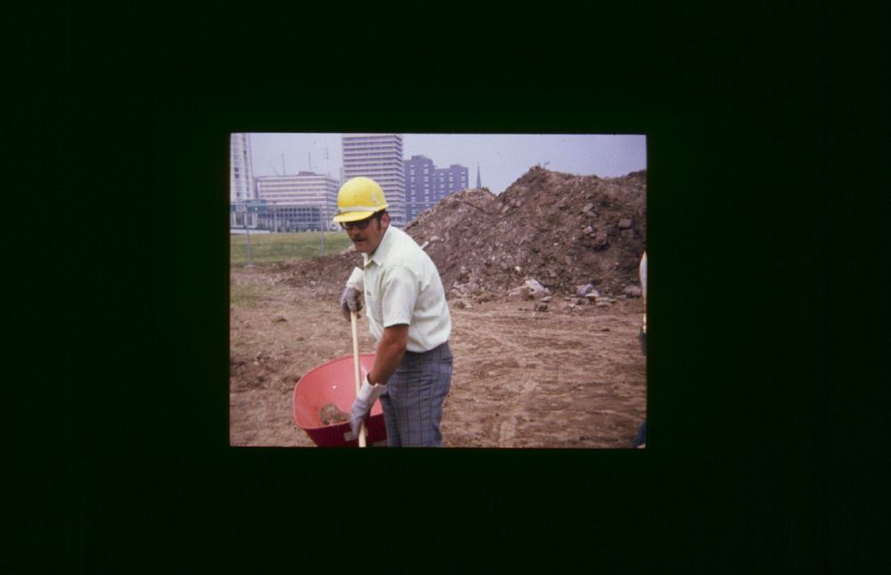 Working on the walkway. ; July 1975