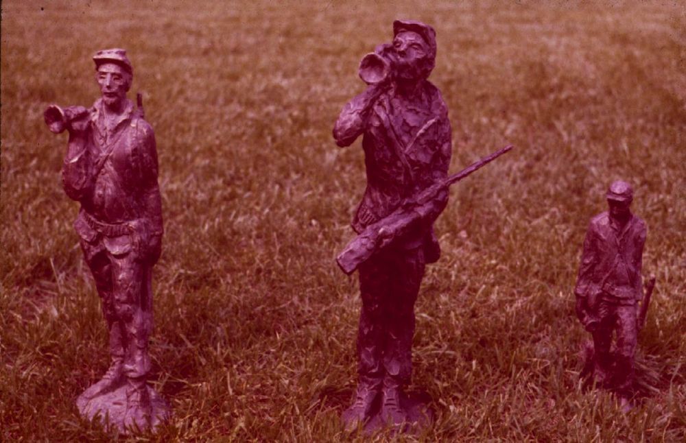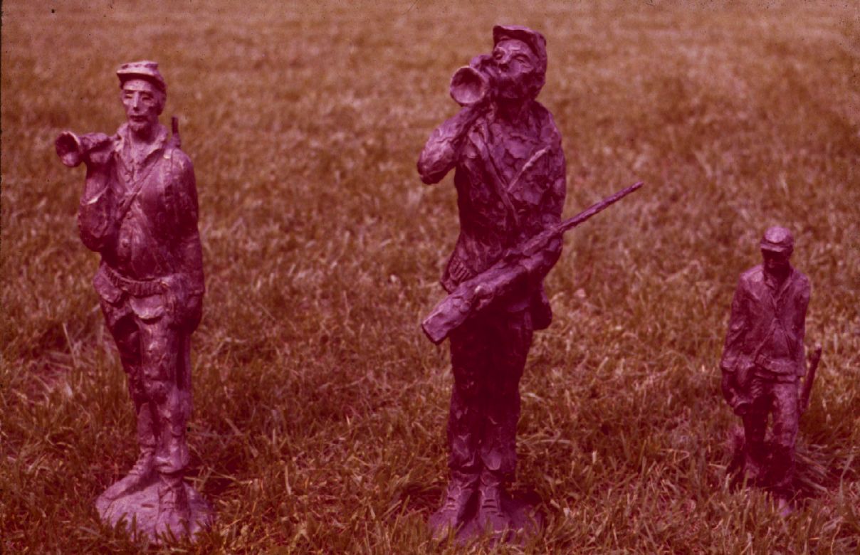 Three bugler statues in the grass-JEFF 6071. ; April 1963