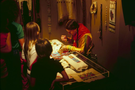 Tim Ramsey demonstrating Native American beadwork. ; July 1982