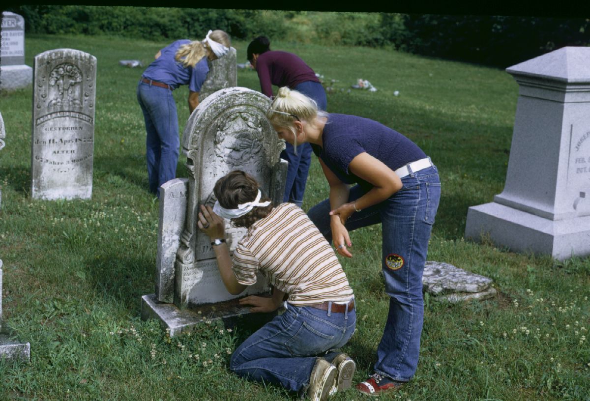 Jay Crowdus and Sandy Hardy in Gumbo Cemetary. ; June 18-19, 1973
