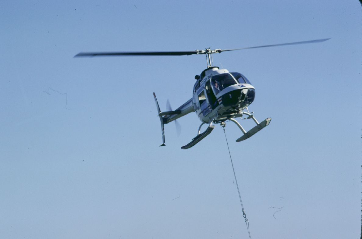 Helicopters planting trees. ; December 1980