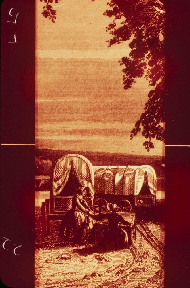 Resting near covered wagons (etching) (22,5)