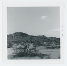 Black and white image of mesa with heavy cholla stand