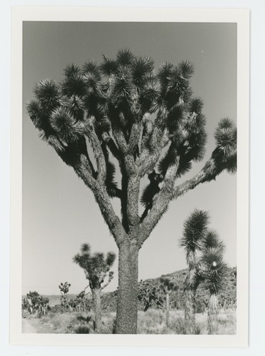 Black and white image of Joshua trees