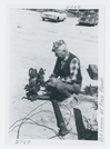 Black and white image of manual jackhammer and Bob Lennon