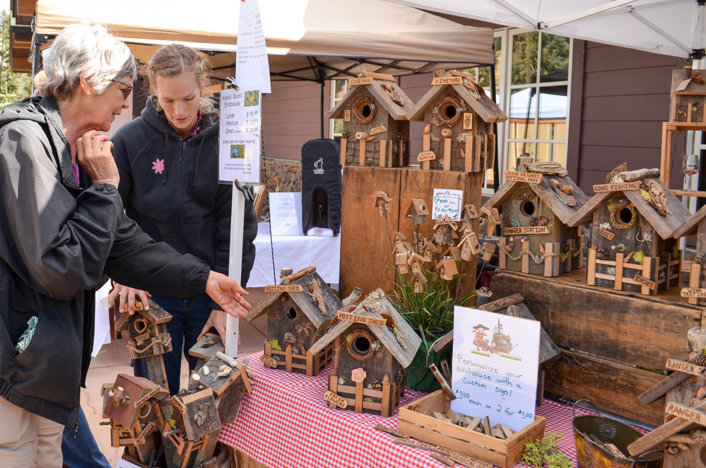 Birdhouses in a booth for sale at the Lassen Art and Wine Festival.