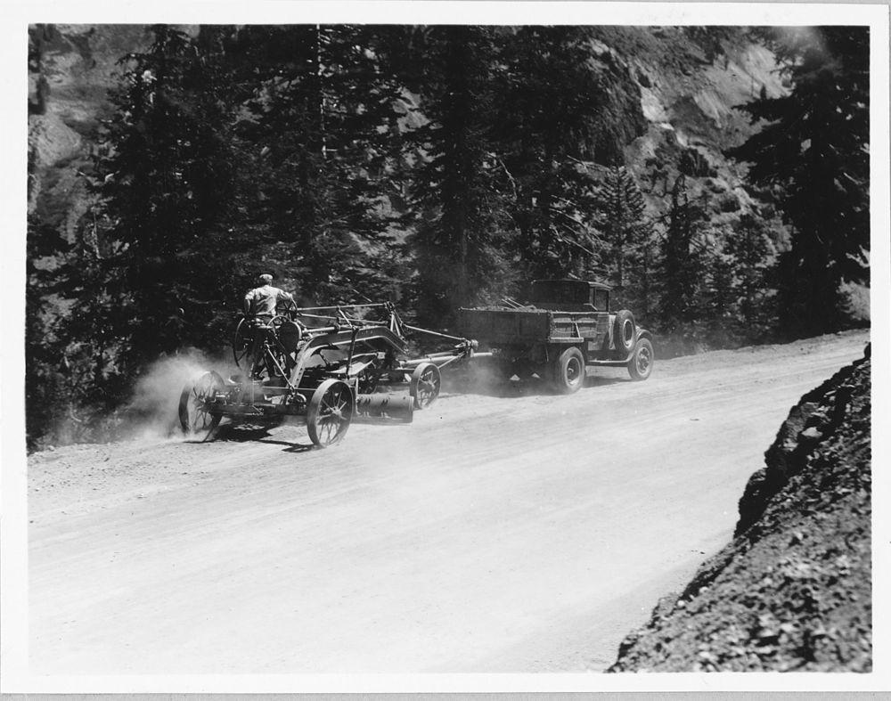 Administrative Collections: Album 5 (Emergency Conservation Works) -Grading equipment in operation on Lassen Park Road above Steamboat Springs