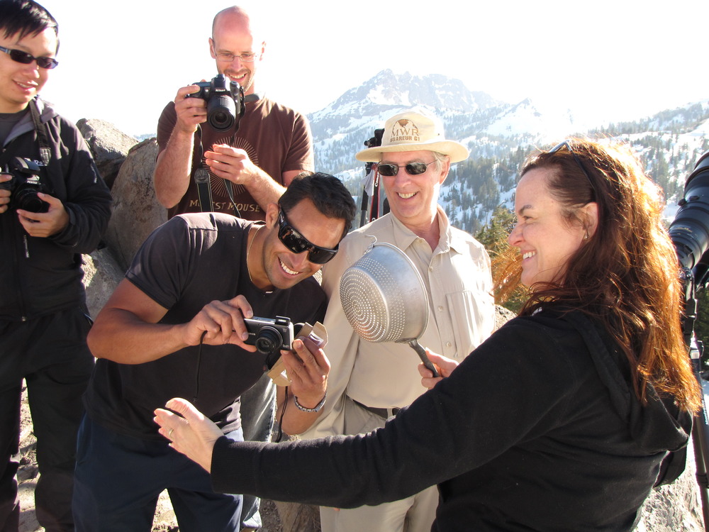 Eclipse viewing with collander