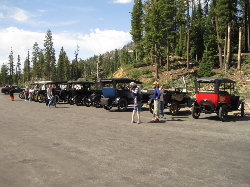 Antique cars in the Kohm-Yah-mah-nee Visitor Center parking lot during the Antique Auto Club Tour.