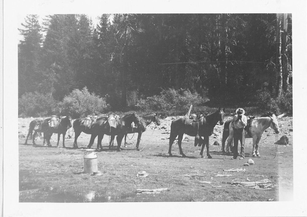 Administrative Collections: Album 1-Fish-planting trip with large number of pack horses carrying canisters of fish. Photographs by Richard Book