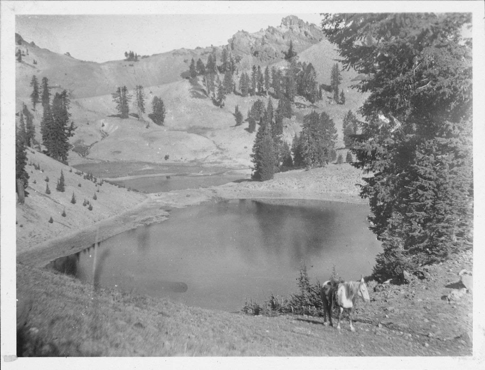 Arthur G. Holmes Collection: Album 2. " September 21- riding West boundary via Brokeoff Meadows, Blue Lake Canyon and return Sulphur Works via Lake Emerald and Highway. A hard but intensely interesting trip. From the checking station, to the Sulphur Works, and up to the little visited Ridge Lakes."
