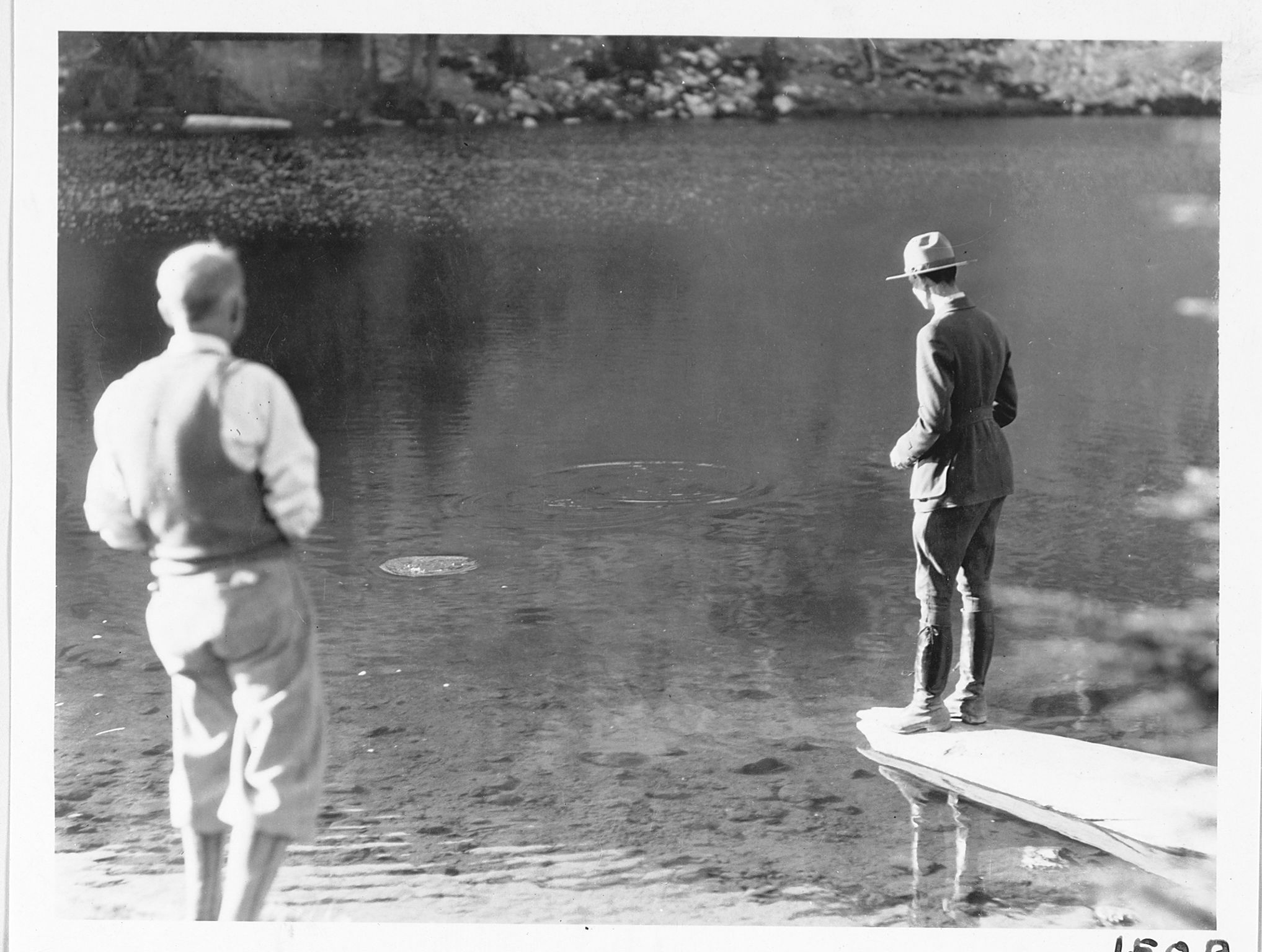Administrative Collections: Album 1- Visitors feeding fish at Lake Emerald