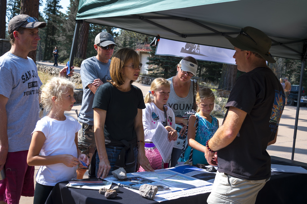 A group of visitors watching demonstration at a Dark Sky Festival Booth.
