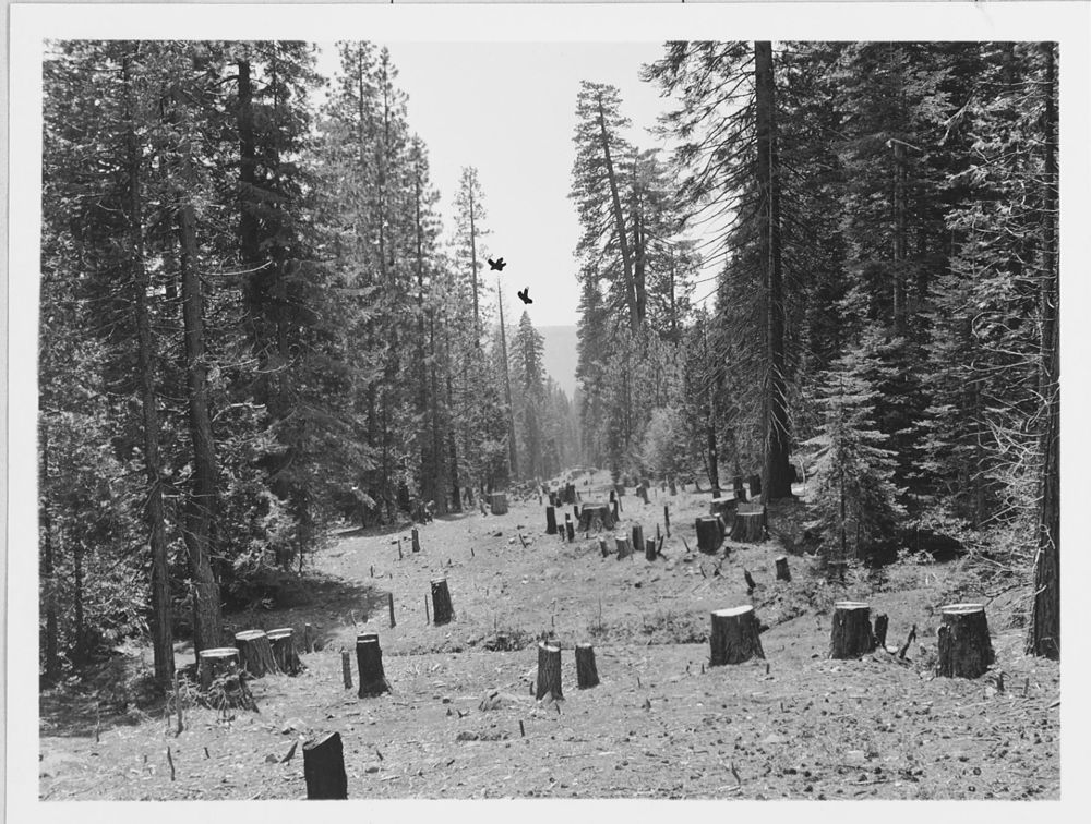 Administrative Collections: Album 2-Road clearing for construction of Lassen Park Road southwest approach showing timber and brush removal and burning.