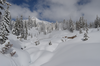 Snow-covered Diller Peak rises above West Suplur Creek at Sulphur Works hydrothermal area