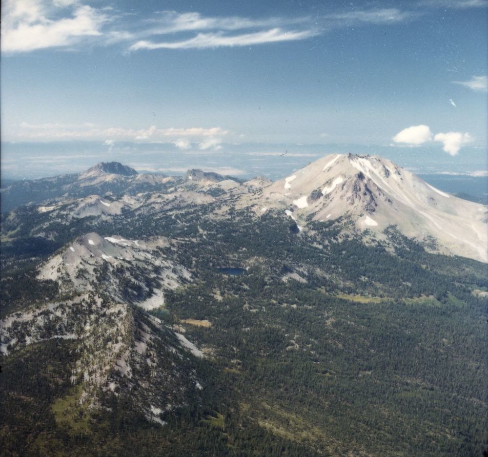 Robert Campbell HIstorical Photograph Collection: Aerial views of LAVO showing Lassen Peak and surrounding features, Devastated Area, Chaos Crags, Crescent Crater, Reading Peak, and Warner Valley