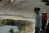 Hikers looking at East Pyrite Pool at Bumpass Hell.