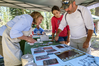 A visitor rolls ink on a wood block carved by Artist-in-Residence Melinda Whipplesmith Plank.