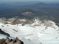 Devastated Area covered in snow viewed from the Lassen Peak Trail