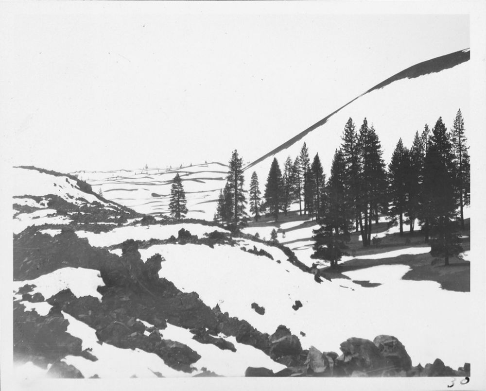 Arthur G. Holmes Collection: Album 1. Snow-covered Butte Lake, Cinder Cone, and