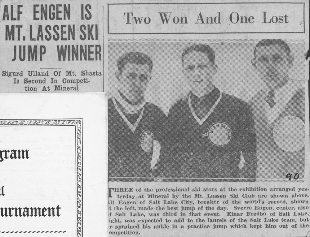 Arthur G. Holmes Collection: Album 3--Newspaper clipping about ski-jumpers Einar Fredbo and Sverre and Alf Engen