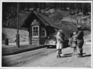 Administrative Collections: Album 4 (Scenics) -Barbara Lloyd, Joan Swartzlow, and Joan Beresford talking to Ranger Holloman at Southwest Entrance Station.