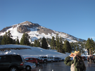 Ranger viewing eclipse with Lassen Peak in backsground
