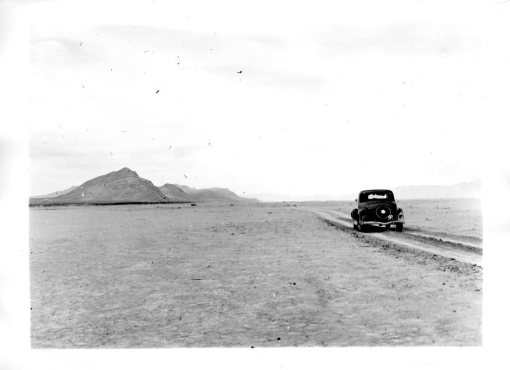 Henry Lind Historic Lassen Applegate Trails Photograph Collection:Car on Black Rock Desert playa