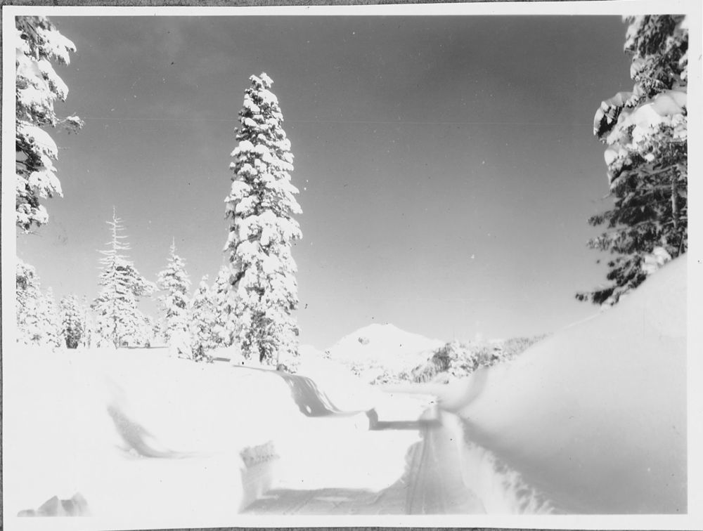 Administrative Collections: Album 7 (Winter Scenes) -Lassen Peak from southern approach to LAVO on Highway 89.