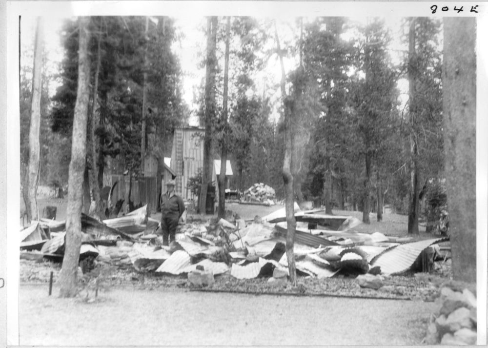 Administrative Collections: Album 9 (Miscellaneous) -Remains of Juniper Lake Lodge after fire