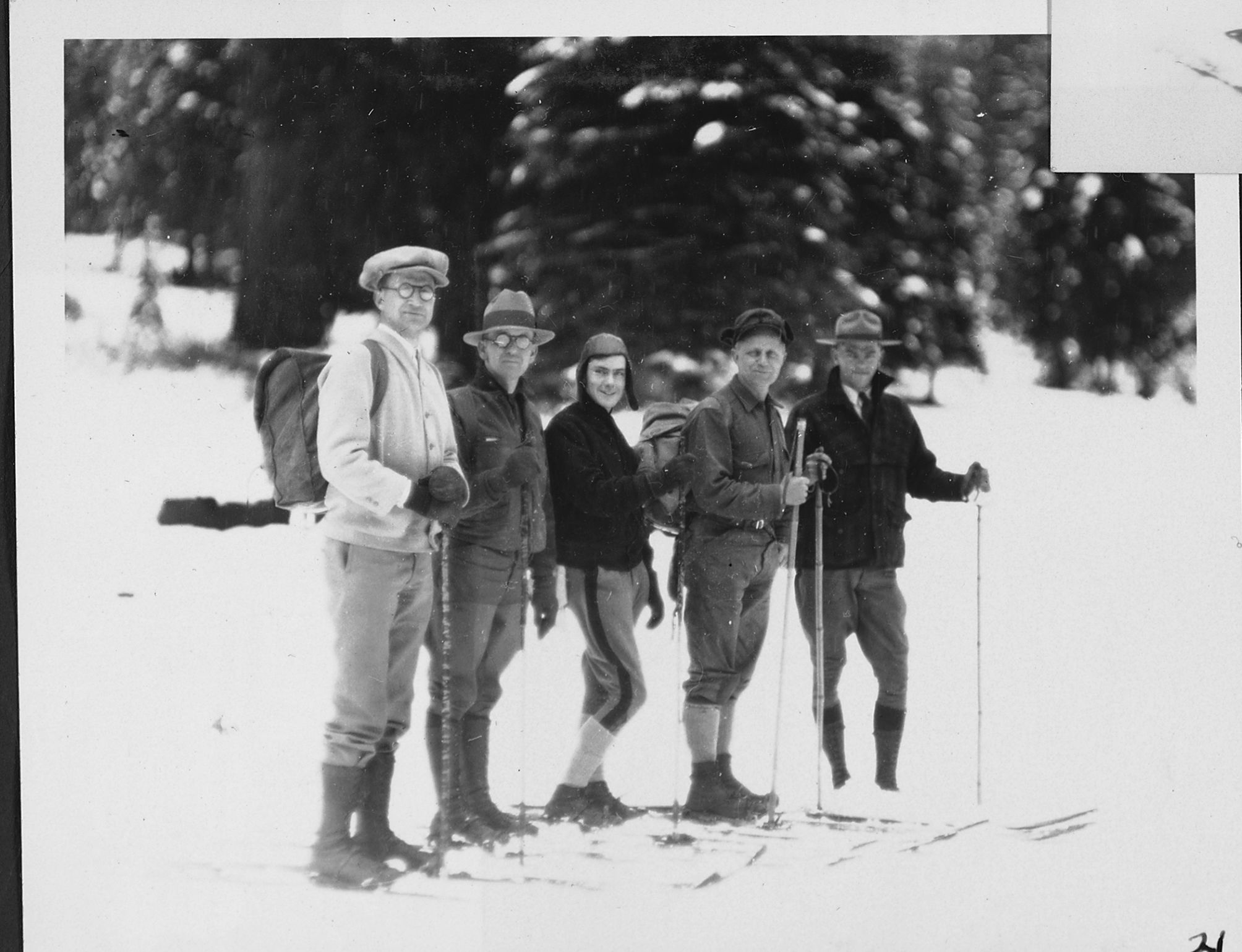 winter including Tom Miller, Jim Linford, Bob Strong, Oliver Kehrlein, Superintendent L. Walker Collins, and Ranger Art Holmes