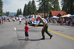 Superintendent Steve Gibbons hands out centennial stickers in the Chester Fourth of July Parade
