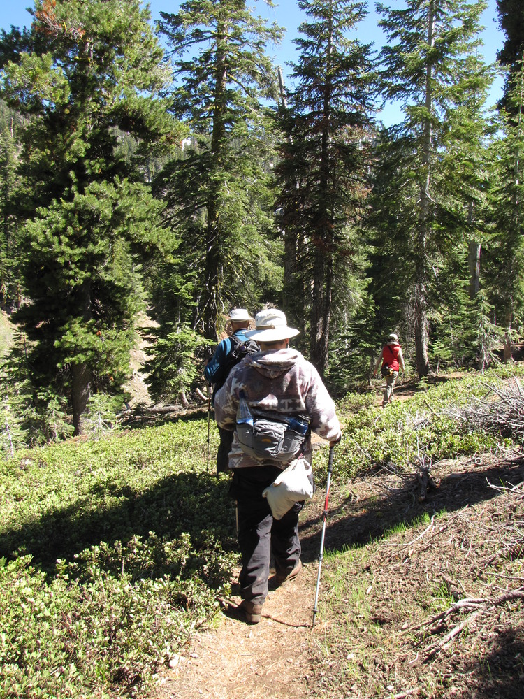 Hikers walking through the forest on the Mill Creek Falls Trail.