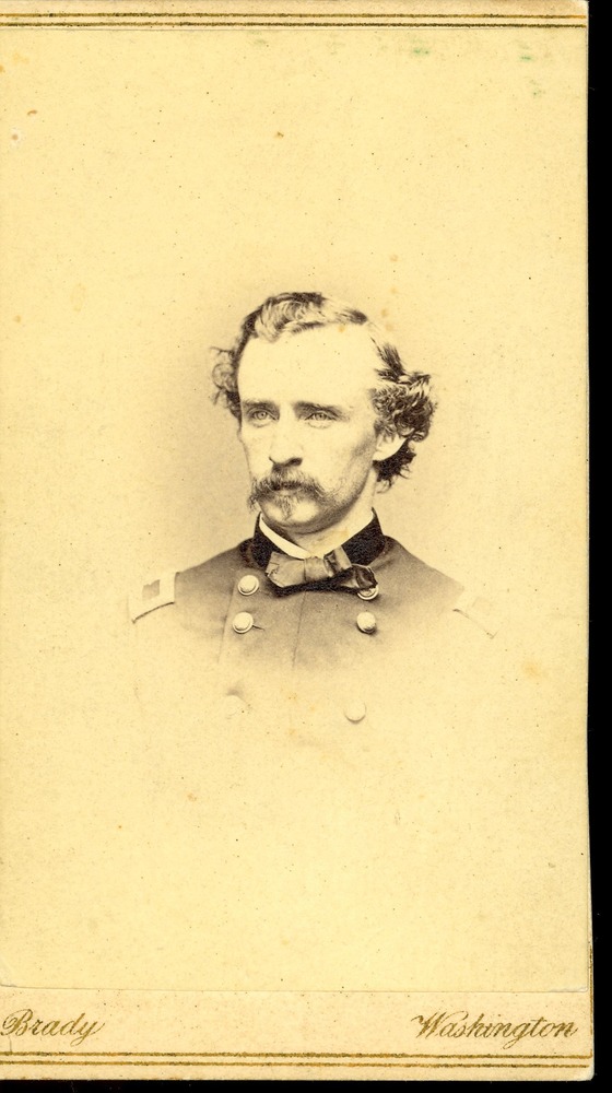 Courtesy of the National Park Service, Little Bighorn Battlefield National Monument, LIBI_00019_00563, Mathew B Brady & Company, "Custer in Military Uniform with Floppy Bow Tie; Bust View," 1864
